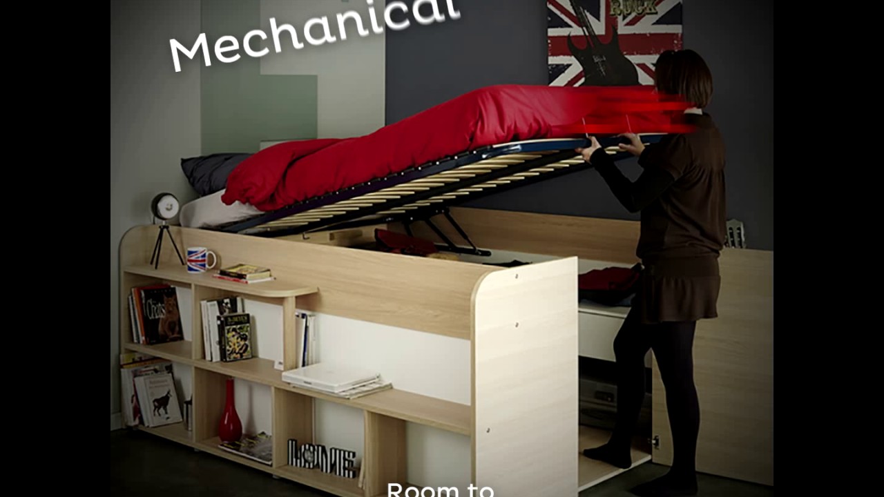 It incorporates a bookcase and shelving to one side and plentiful storage underneath. Do you need more storage in your bedroom, but lack the floor space for additional cabinets? An ingenious storage lift up double bed. This space up double bed will be guaranteed to rock your world. This space up double bed will be guaranteed to rock your world.